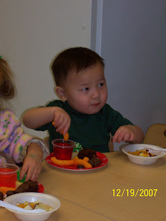 He has had some cold symptoms since Thanksgiving week. While it seemed to linger I kept an eye and ear open and he seemed fine. But when I picked up Tru from school on Tuesday I thought I detected a difference in his breathing. Then in the car I could hear every breath he took. With each breath there was a loud rattling and then he began wheezing. So I picked up Lin-Ley from school, fed the kids dinner, and dropped off Lin-Ley at Aunt Diane’s (Jody’s co-worker and family friend) house. Tru and I arrived at the hospital emergency room at 7:30PM. Long story short – he had four breathing treatments, three x-rays, and was diagnosed with RSV. I had heard of RSV before but was not familiar with it. The nurse simplified it as an adult sized cold in a baby’s body. Tru was sent home at 1:45AM with oral steroids and a nebulizer for at-home breathing treatments.